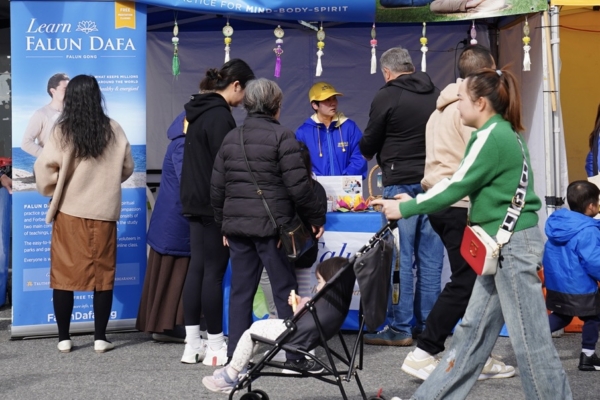 有民众表示,在多元文化交融的节庆中,法轮功展位宁静、祥和,宛如春风拂面,让人倍觉温暖。