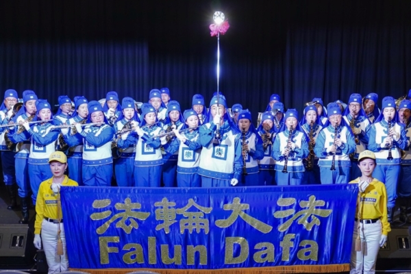 在丰富多彩的节目中,法轮功学员的演出独具风采。上午的腰鼓铿锵激昂,功法展示舒展祥和,赢得观众阵阵掌声;下午天国乐团隆重登场,蓝白相映,雄壮乐声回荡全场,再度将氛围推向高潮。