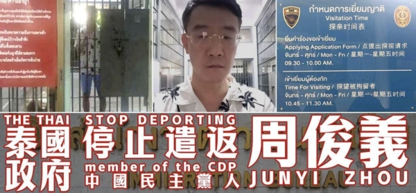 2025年10月08日,中国政治流亡人士周俊义近四个月前在泰国被当地警方以签证违规为由逮捕,面临遣返风险,海外民运界持续关注。这次事件被认为是中共跨国镇压的案例之一。知情者指,泰国早已不是中国流亡者的避风港了。