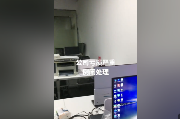 “十一”长假期间,网上有不少商家转让办公设备。一位在东莞厚街的博主说,因电商公司亏损严重,倒闭退场。惠州也有公司倒闭清仓,办公设备低价处理。