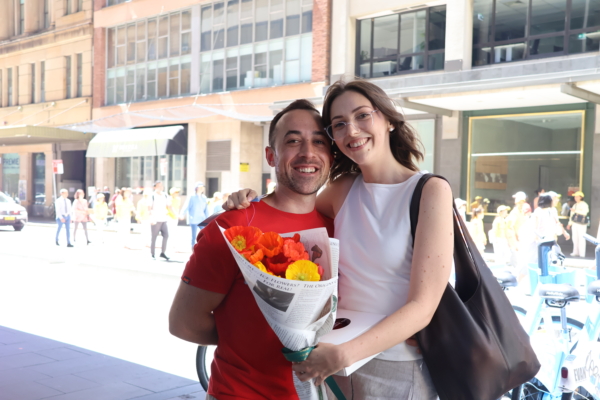 来悉尼看望亲友的伦敦人Katie与孙女一起观看了游行。她表达了对游行意义的认同以及对自由与人权的支持。