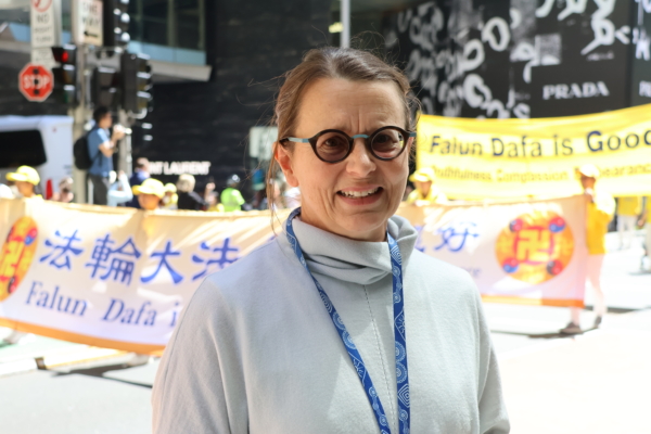来自墨尔本的法轮功学员劳拉·科佐利诺(Laura Cozzolino)参加了当日游行,她是一名有16年教学经验的高中老师。她坦言,自2008年开始修炼后,她的生命发生彻底的改变。她表示,法轮大法让她找到人生方向,生命有了新的深度。