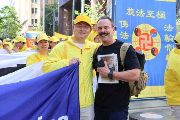 金融从业人员大卫·哈维(David Harvey)表示,法轮功的价值观让他产生共鸣,而游行现场的色彩与氛围令他感受到温暖。