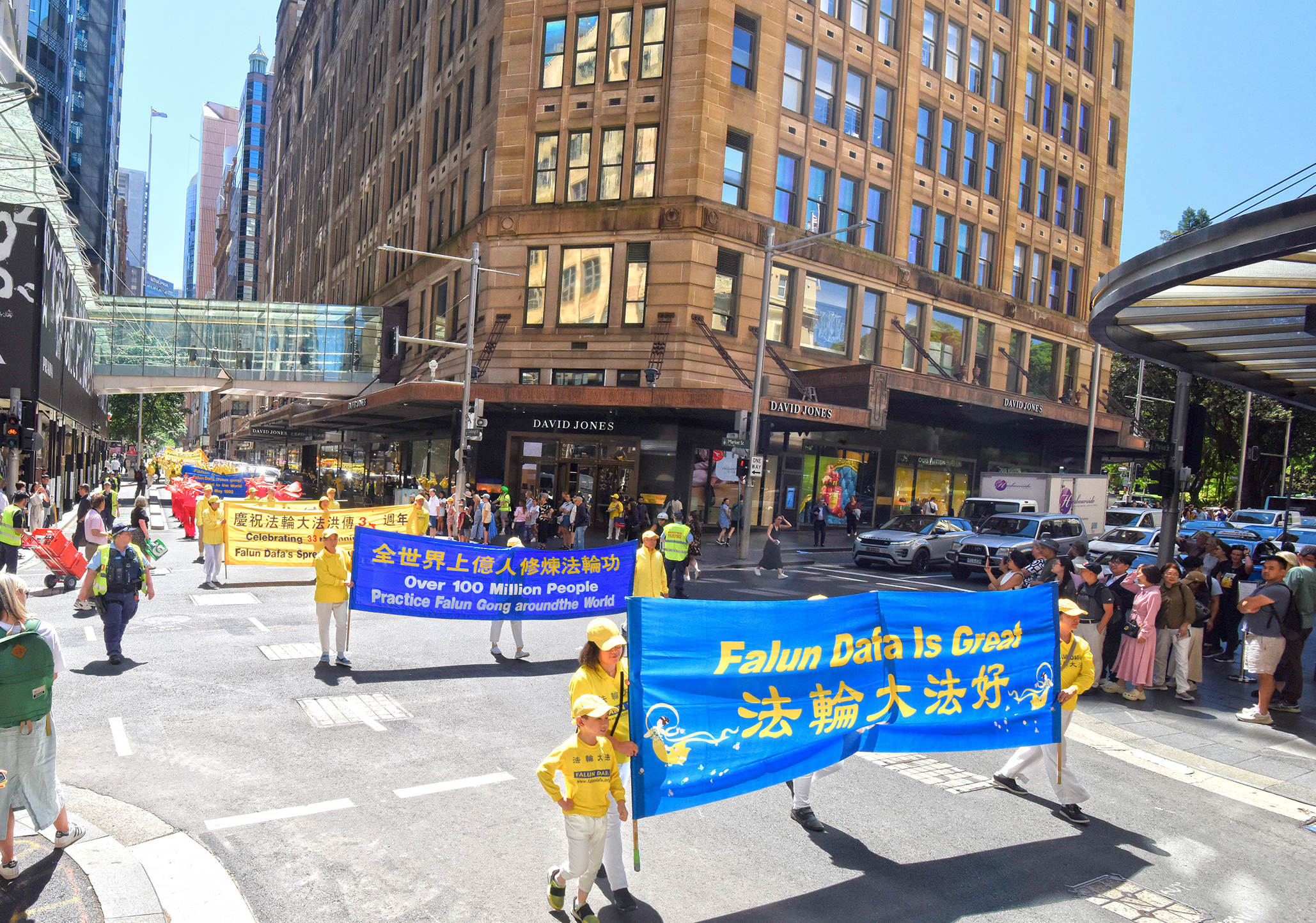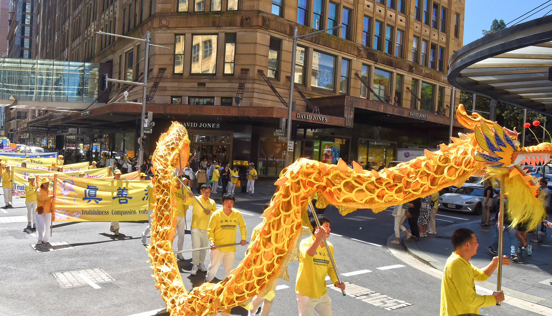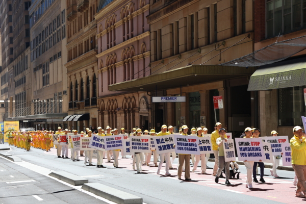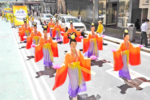 当日正午时分,由“法轮大法好”“停止迫害法轮功”及“庆贺4亿5千万中国人退出中共党、团、队组织”三大方阵组成的游行队伍,在警车开道下从悉尼著名的马丁广场 (Martin Place)出发,途经市中心多条繁华街道,历时近一个小时,于贝尔莫公园(Belmore Park)圆满结束。