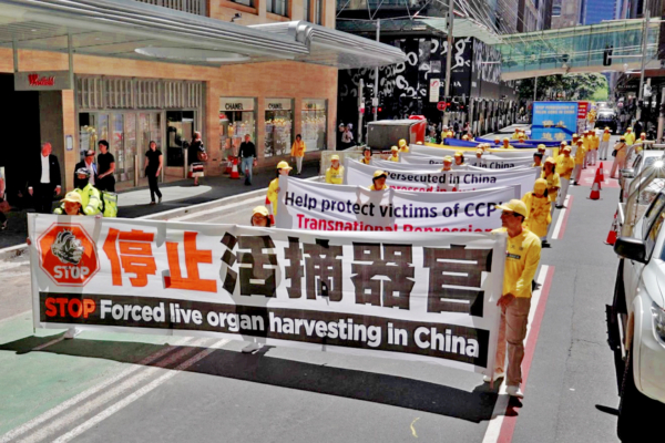 “停止迫害法轮功”横幅揭中共活摘器官罪行