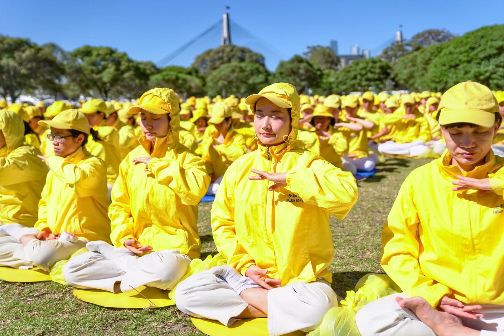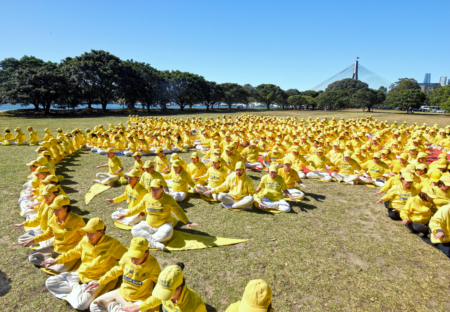 10月11日(周六)下午,近7百名来自澳洲各地的部分法轮功学员,在悉尼Glebe区的Jubilee Park公园草坪上排出光芒四射的法轮图形,向澳洲社会传递法轮大法的美好。