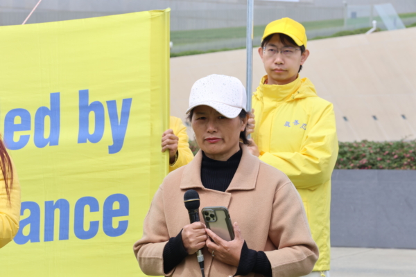 法轮功学员Nancy Dong在当日的集会上以自己的亲身经历揭露了又一起中共跨国镇压事件。