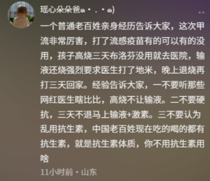 一网友还透露,“我们去给宝宝打疫苗,医生就说现在流感特别严重,只是现在都没有公布。”