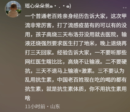 还有网友发视频称,“已经刷到几个小朋友因为甲流去世了,身为两个孩子的妈妈,大半夜焦虑的睡不着觉,快抑郁了。”