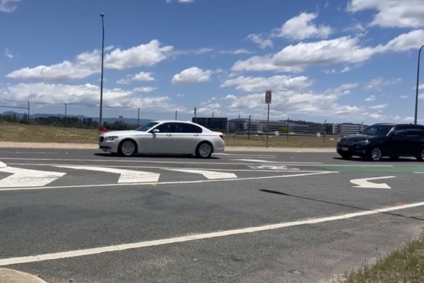 周一中午,当他及其车队离开堪培拉机场时,法轮功学员在其车队经过时,高举“解体中共 制止迫害”“天灭中共 停止迫害法轮功”横幅,高喊“法轮大法好!停止迫害法轮功!”和平表达抗议 。傍晚,国会活动结束后,赵乐际车队再度迎面法轮功学员的抗议。
