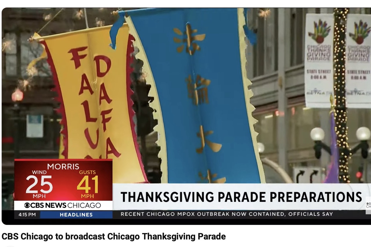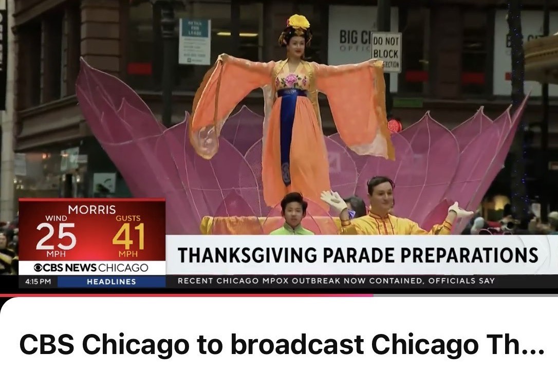 CBS Chicago作为直播承办方,在提前发布的34秒游行预告新闻片中,以2024年法轮大法游行的精彩片段作为主要亮点。