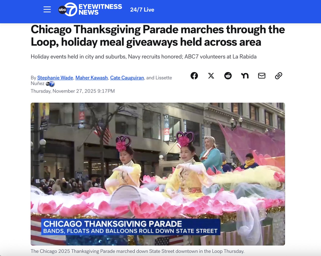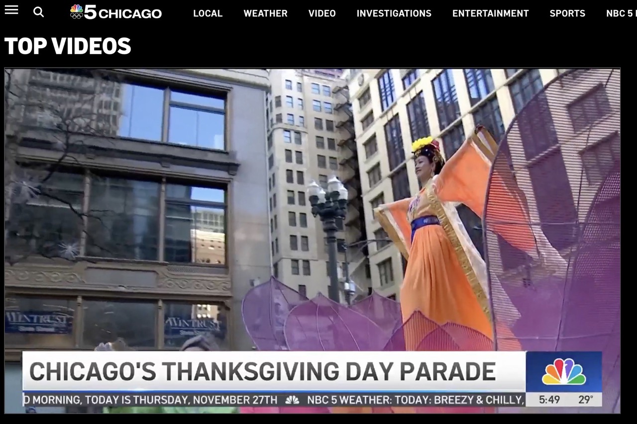 除了芝加哥CBS电视台,ABC电视台、NBC电视台等多家主流媒体都在今年芝加哥感恩节游行的当天新闻报导中都展示了法轮功学员游行队伍的精彩瞬间。