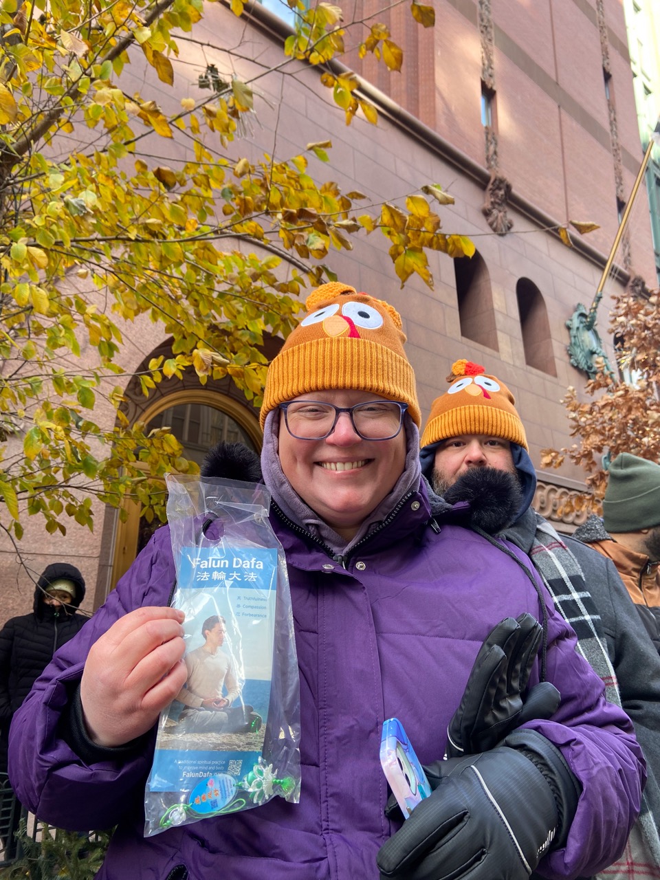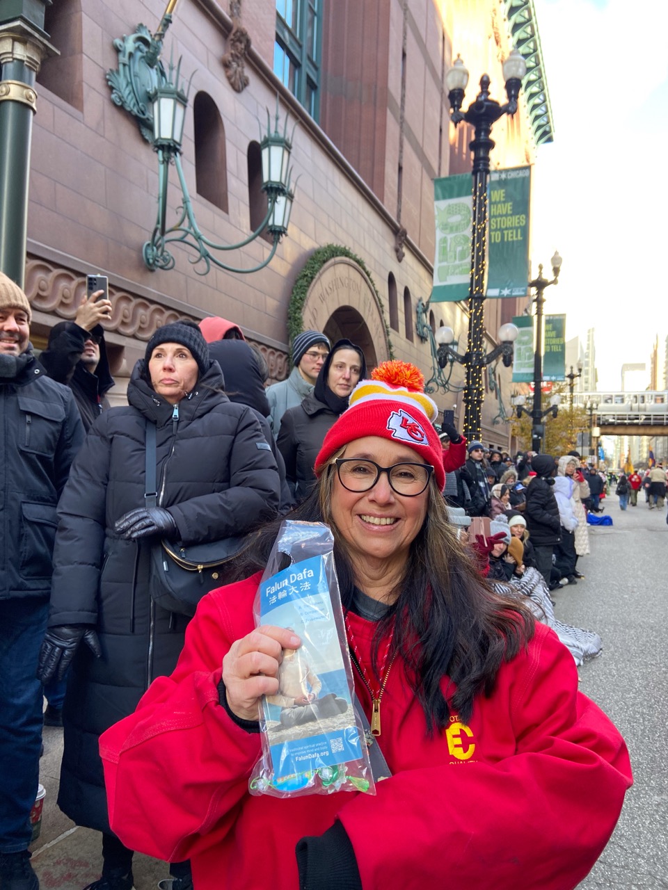 值此感恩节,张女士表示她特别感恩法轮大法,她的家人,上到父母下到孩子都因为修炼法轮大法受益。“我真的非常感恩能够走入修炼,”张女士说,“我也希望通过游行,大家在这个寒冷的节日也可以感受到(法轮大法)向上的正能量或者是一种温暖。”