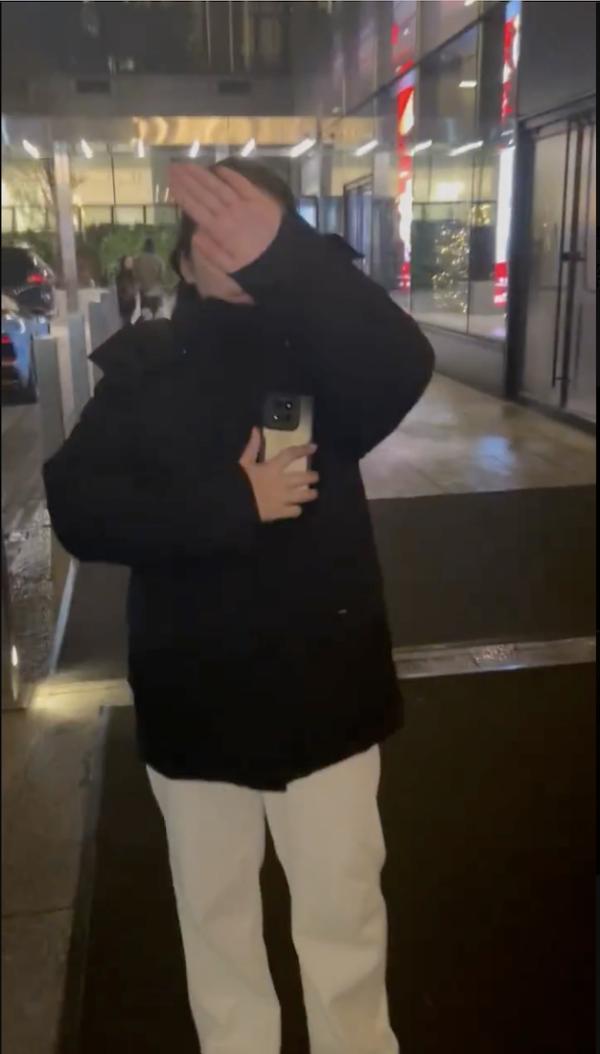 “我发现不对劲,就跟着他们,光明正大的。他们有点意外惊慌,往中领馆那边走。手机录像显示,他们走到中领馆的大门没有进去,过去大门有个小门,他们明显想进小门,又怕明显的暴露,犹豫一下,又往前走。