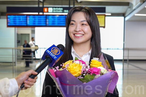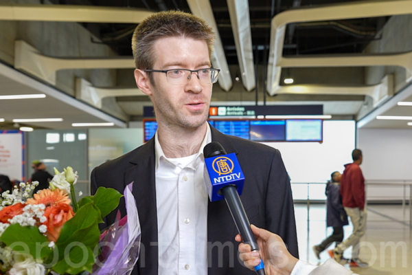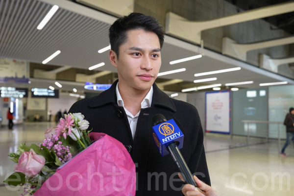 当天下午,神韵艺术家们神采奕奕地走出航班闸口,迎面而来的是法国热情粉丝献上的鲜花与热烈掌声。
