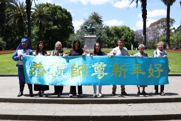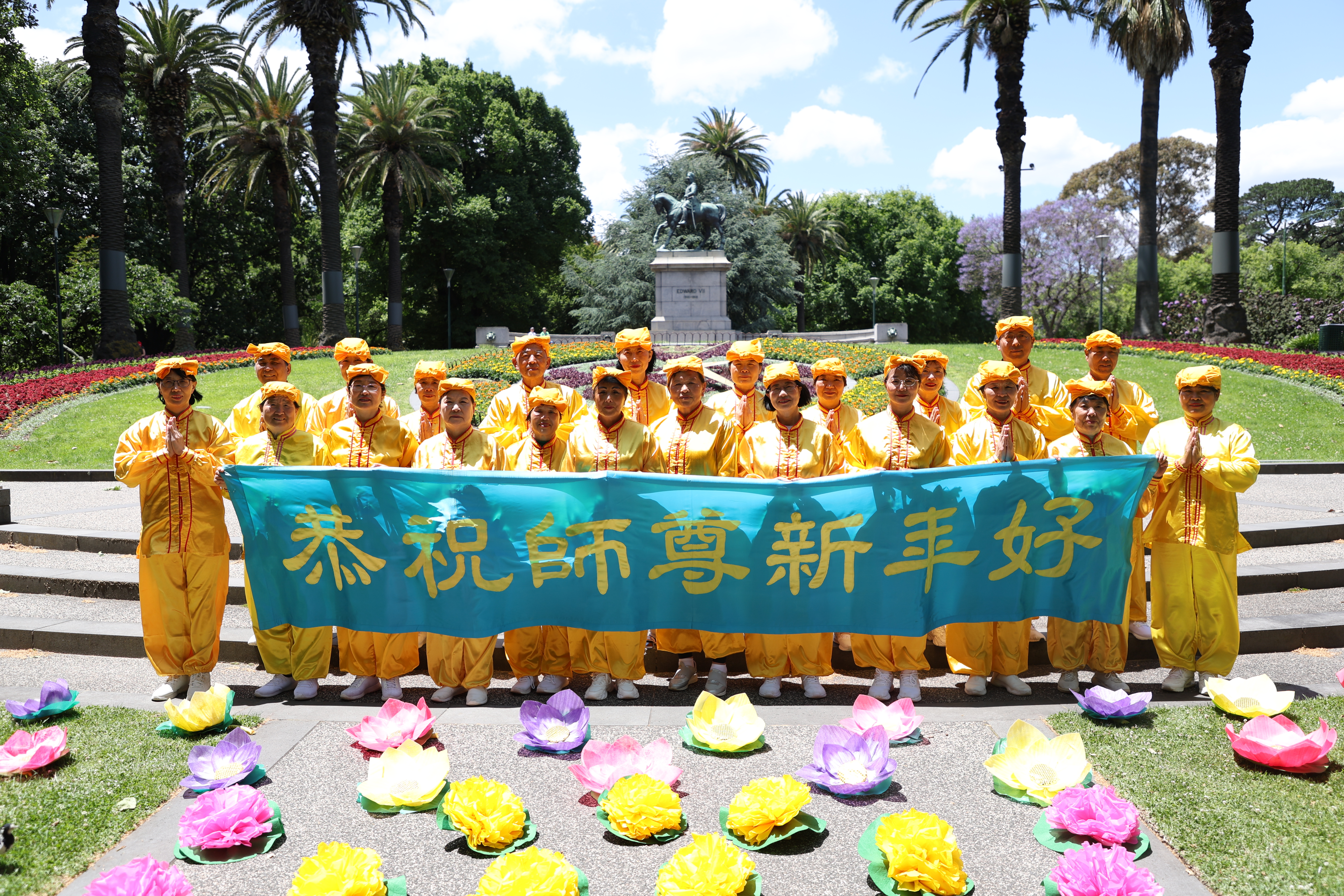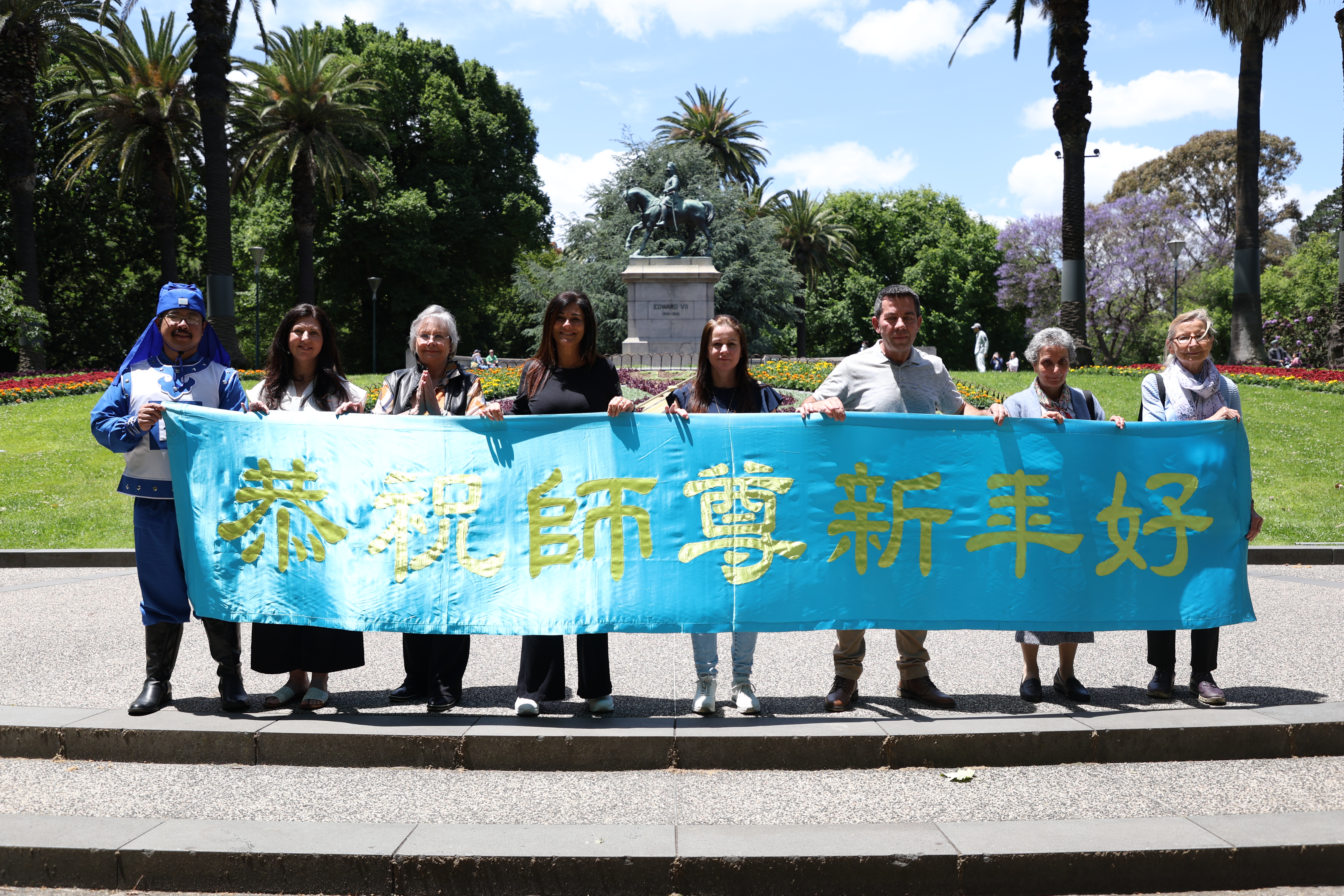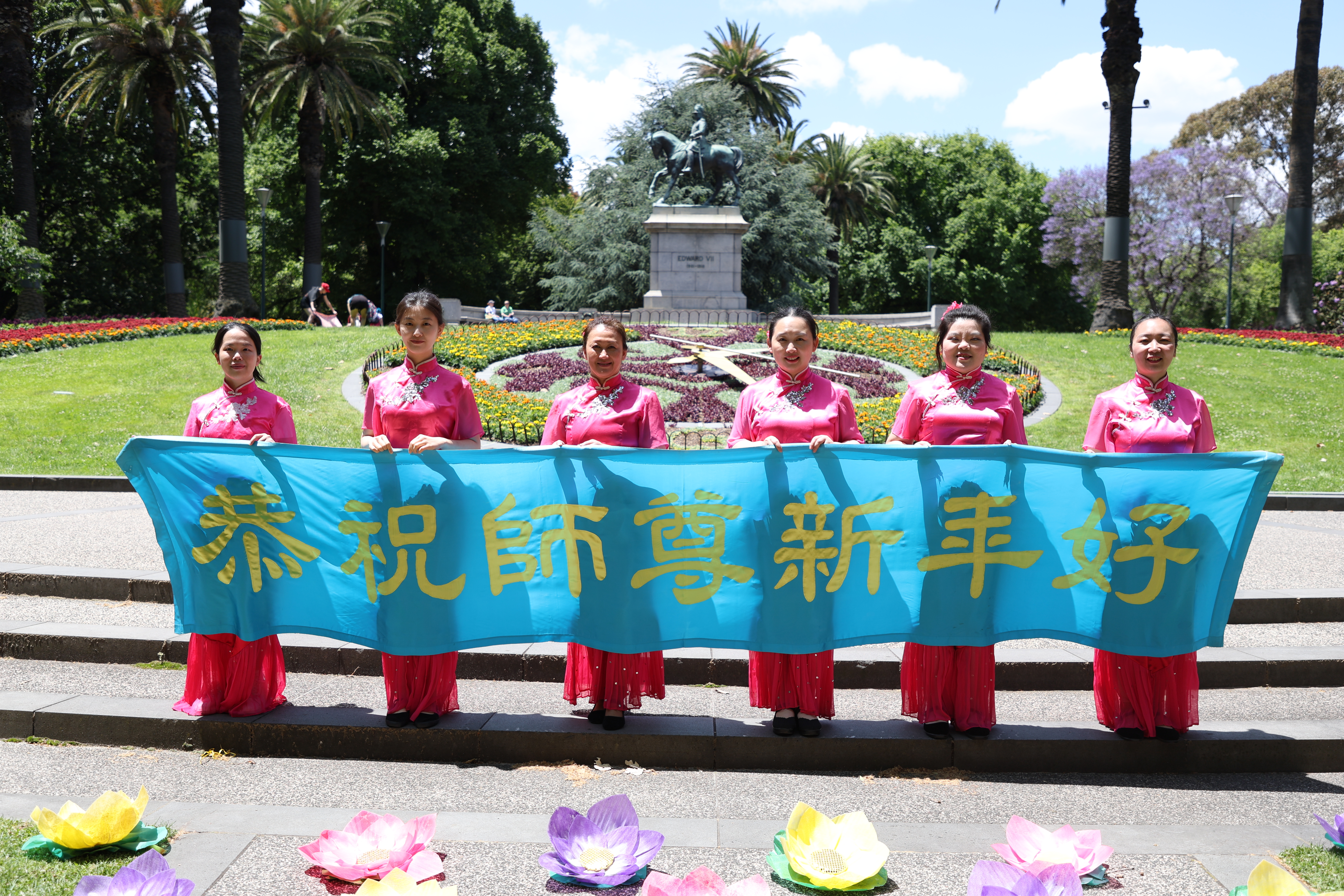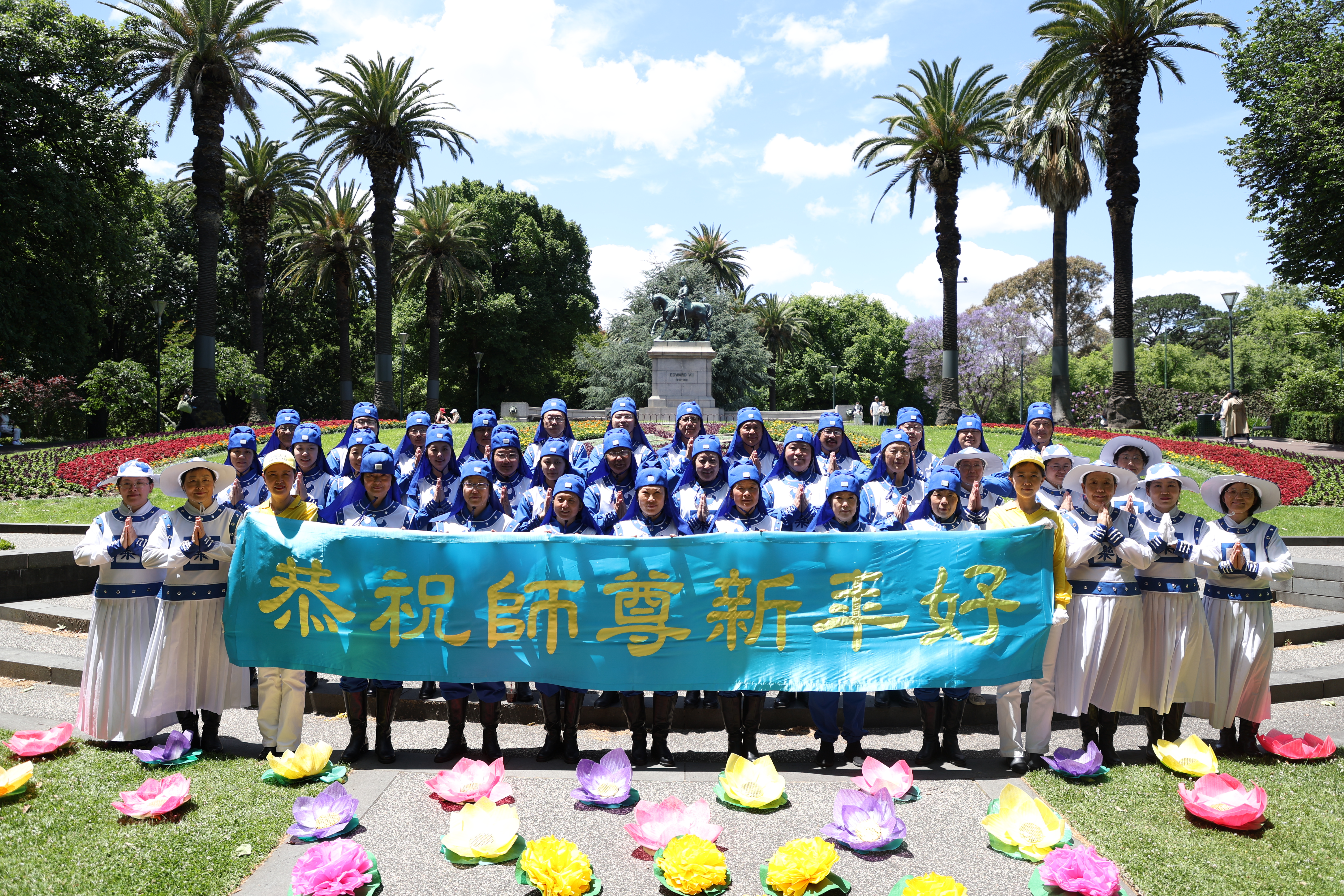 活动当日,墨尔本部分法轮功学员身着民族服装、西装礼服或节庆服饰,聚集在市中心绿草如茵的维多利亚女王花园(Queen Victoria Gardens),以集体炼功、合影恭贺以及分享心得等方式,表达对法轮功创始人李洪志大师的无限思念和由衷感恩。