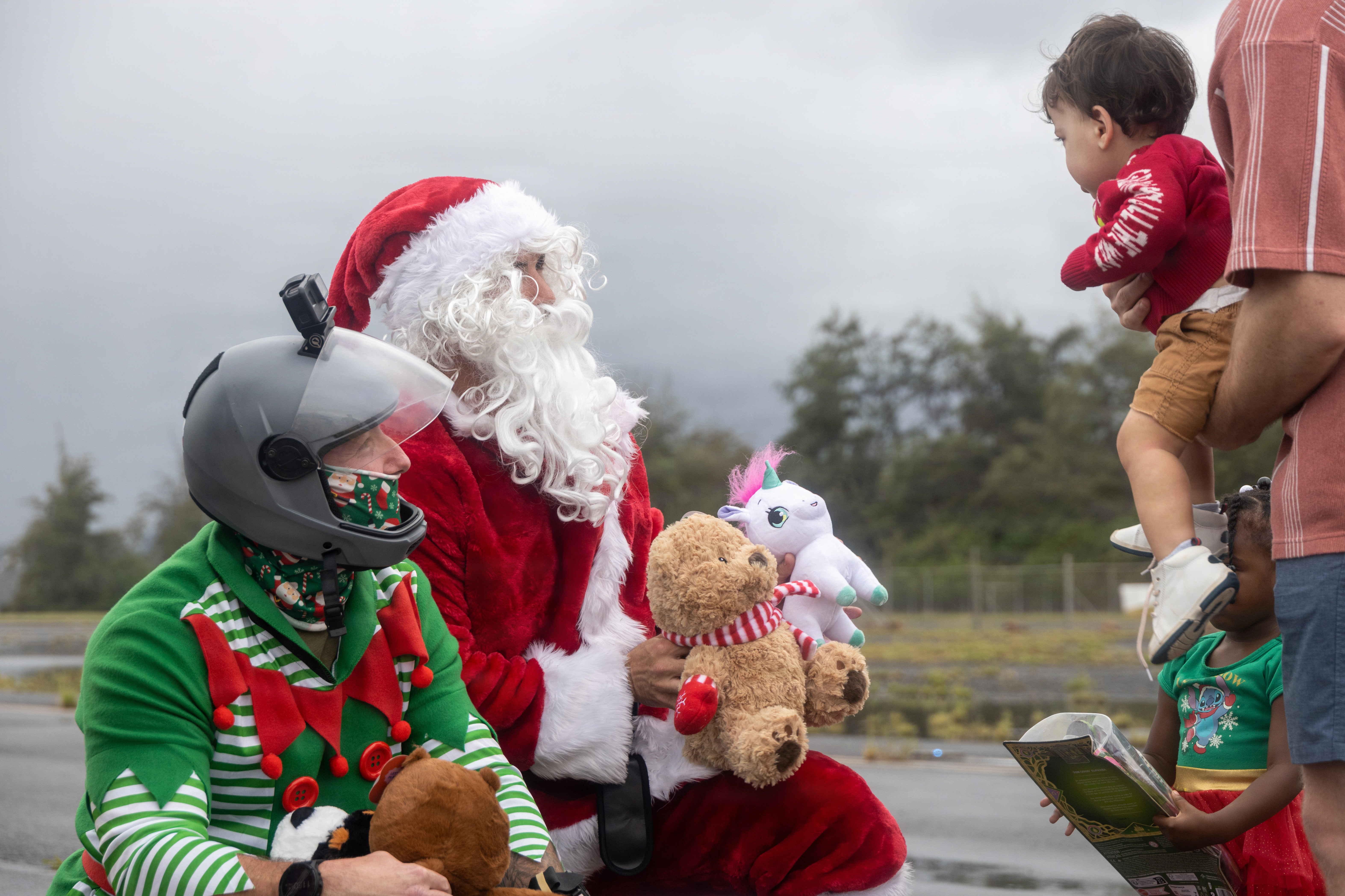 这些由关岛居民捐赠的包裹中装有大米、渔网、书籍及儿童玩具。当装满物资的彩色降落伞从天而降时,对于岛上的居民而言,这些机组人员就是跨越海洋、从天而降的圣诞老人。