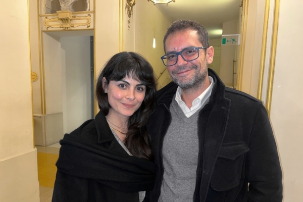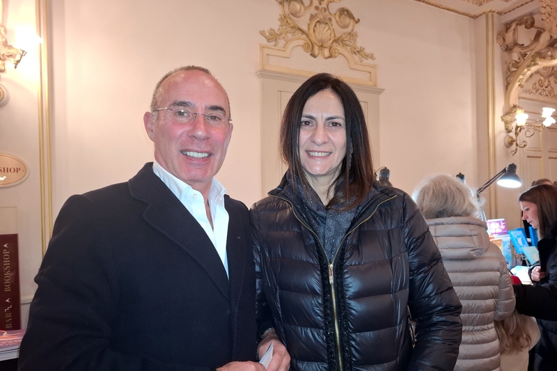 艺术画廊的创办人兼创意总监Mariangela Caruso女士和朋友Vincenzo Favale一起观赏神韵演出后,心情非常激动。