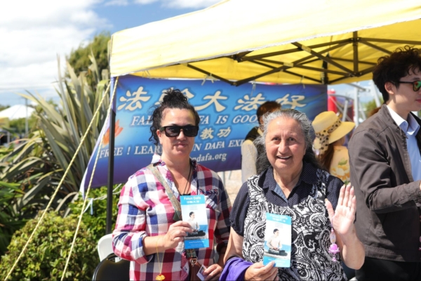 当地民众Lynette表示,在参加今天的活动之前本来觉得很疲劳,只想在家中休息,没想到,在法轮功摊位上学炼了两套功法之后,觉得全身放松,精神焕发。她说自己是毛利人,也一直在寻找一种放松的锻炼方式,但是寻寻觅觅,始终没有头绪。想不到今天在文化节上的中国文化摊位上找到了。Lynette还说,她非常感谢法轮功学员把这个信息传达给她们,她和家人一定会更多了解法轮大法。