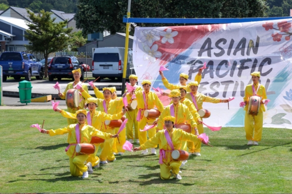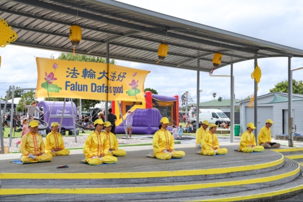 新西兰法轮功团体应邀参加了庆祝活动,他们在舞台上表演了儿童莲花舞蹈、腰鼓、舞龙,古筝弹奏等节目,并在文化区设置了“真善忍美展”,还有展位向民众介绍法轮大法,受到观众的欢迎。